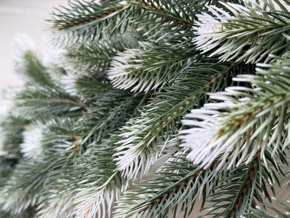 Лита гірлянда  виготовлена з високоякісних, реалістичних литих гілок зеленого кольору з білими кінчиками, що створюють ефект природної засніженості. На відміну від гірлянд із напиленням, яке з часом осипається, ця модель має цільну двоколірну структуру, що робить її довговічною, практичною та екологічною.